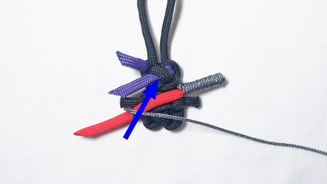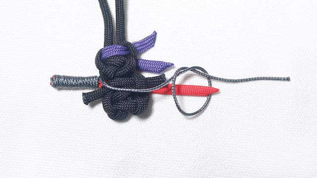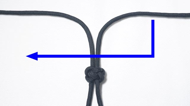 上の画像のように、ダイヤモンドノットの結び目を作ります。