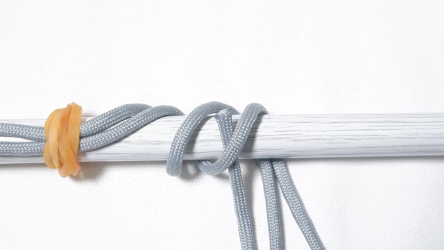 こちらは、ストッパーノットのバージョンのガウチョノットなので、編み目の後に結んで 飾り結びとして使うこともできます。