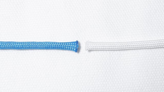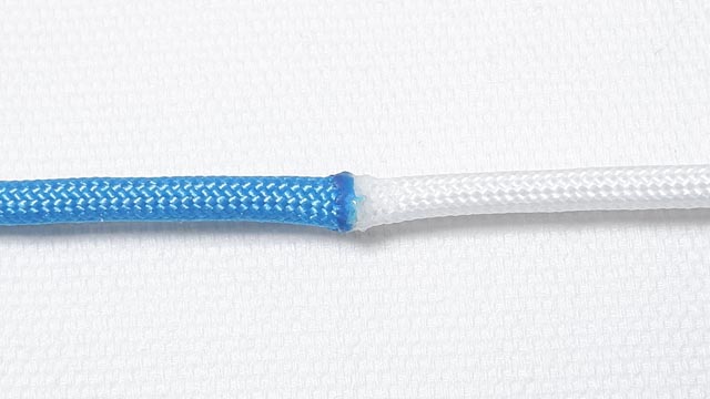 2本のパラコードの両端をライターなどで焼いてから、くっ付けます。