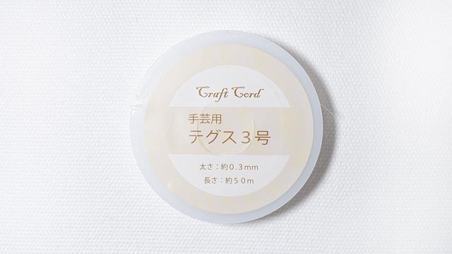 バスケットボールのチャームを取り付けるために、テグスも用意しました。(こちらも、100均セリアの物を用意しました)