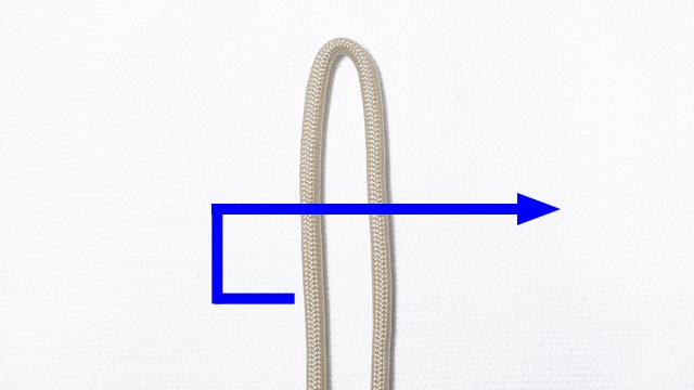 2本の紐を 矢印のように移動させて、左に輪を作ります。