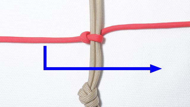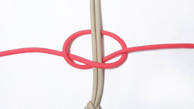 ここで、赤い紐の方の結び目を 引き締めます。